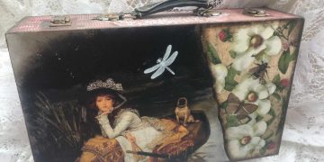 Bőrönd kicsit másképp. Decoupage és egyéb vegyes technikák alkalmazásával készült, sok pittoricoval.