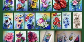 5 x 7 cm akvarell virágok, képeslap méretű paszpartuban