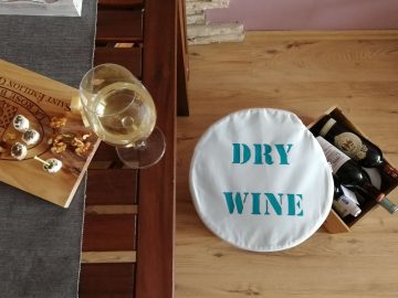 Sweet home - dry wine párnák készítése, stencil nélkül, farönk ülőkére.