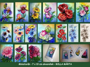 5 x 7 cm akvarell virágok, képeslap méretű paszpartuban