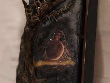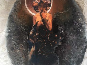 Feszített vászon kép vegyes technikával: decoupage és 3D.