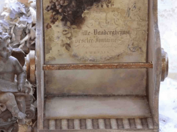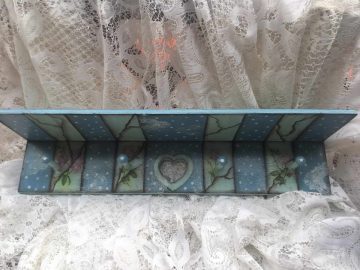 Fali szekrény díszítve decoupage technikával és házi készítésű papíragyaggal, amivel 3D-s effekteket lehet készíteni, száradás után kőkeményre szilárdul.