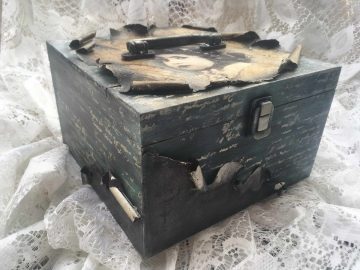 Fogantyús kincses doboz vegyes technikával: decoupage, pittorico, nyomda
